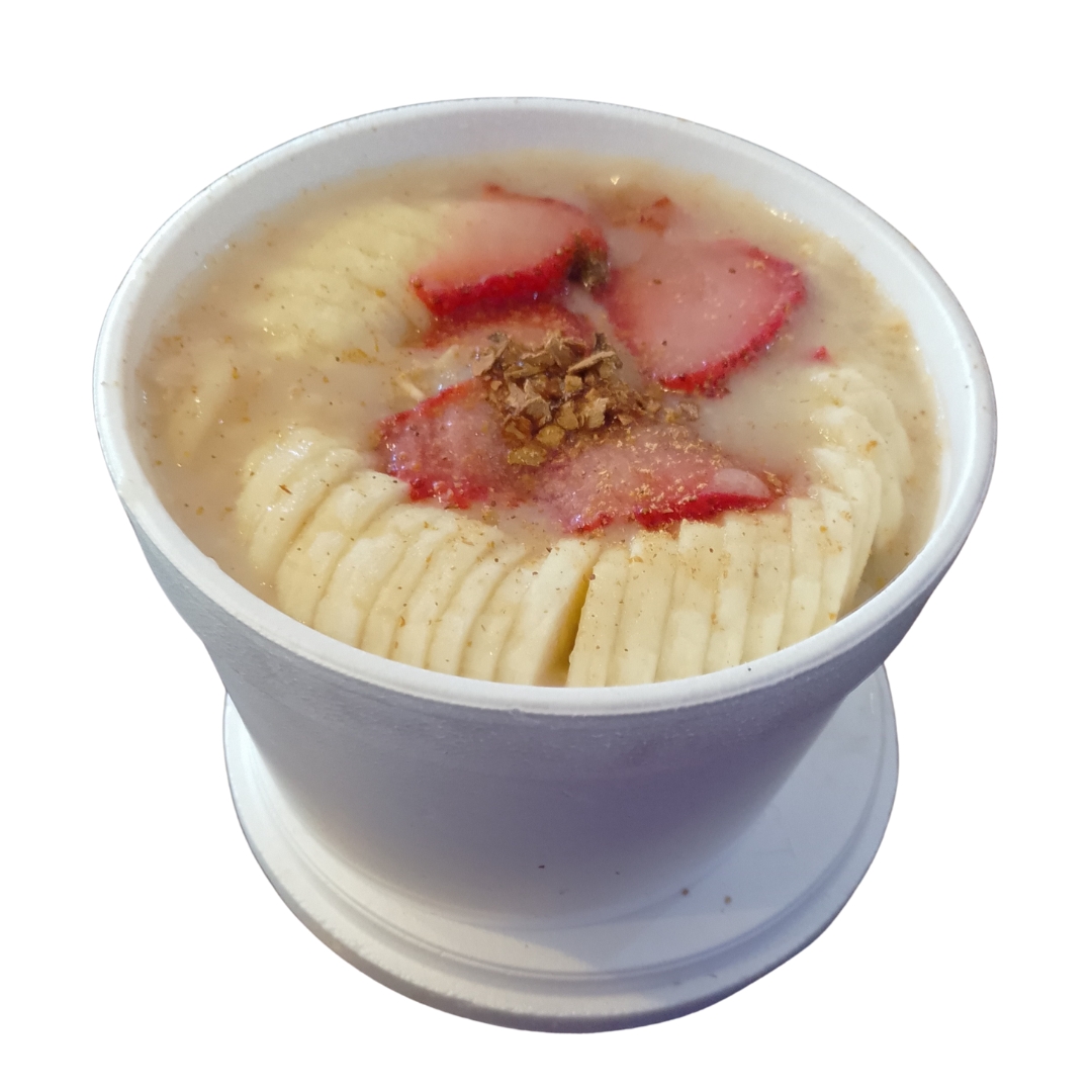 PLATO DE AVENA CON PLÁTANO, FRESA, ZARZAMORA Y MORAS AZULES.