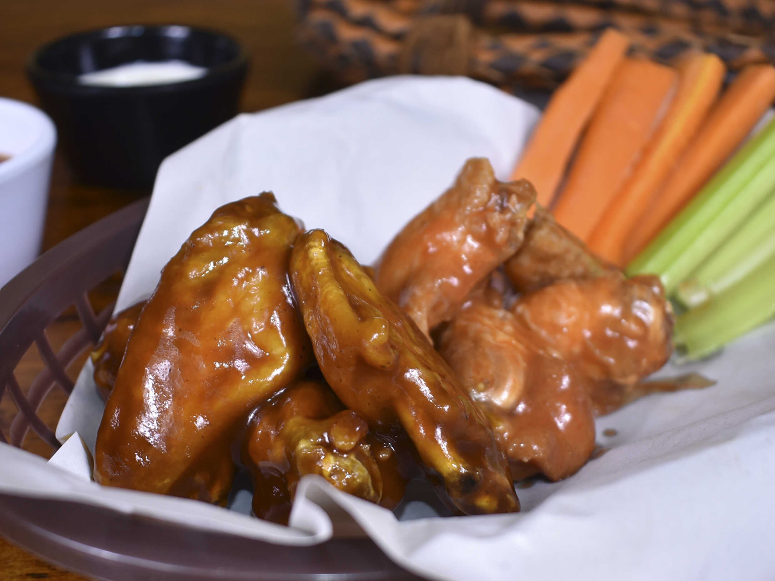 18 alitas , acompañadas de apio, zanahoria y ranch