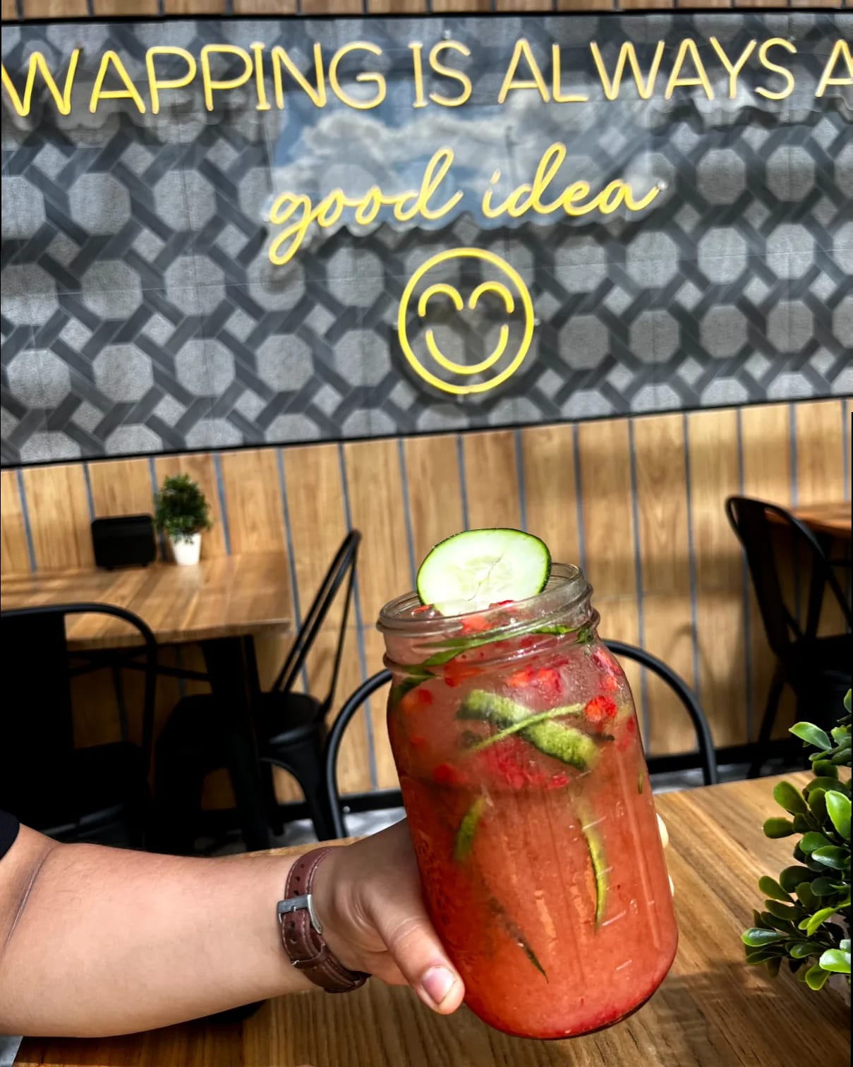 Relleno de frijoles y bañado en salsa de tomate casera, acompañado con chilaquiles y ensalada.