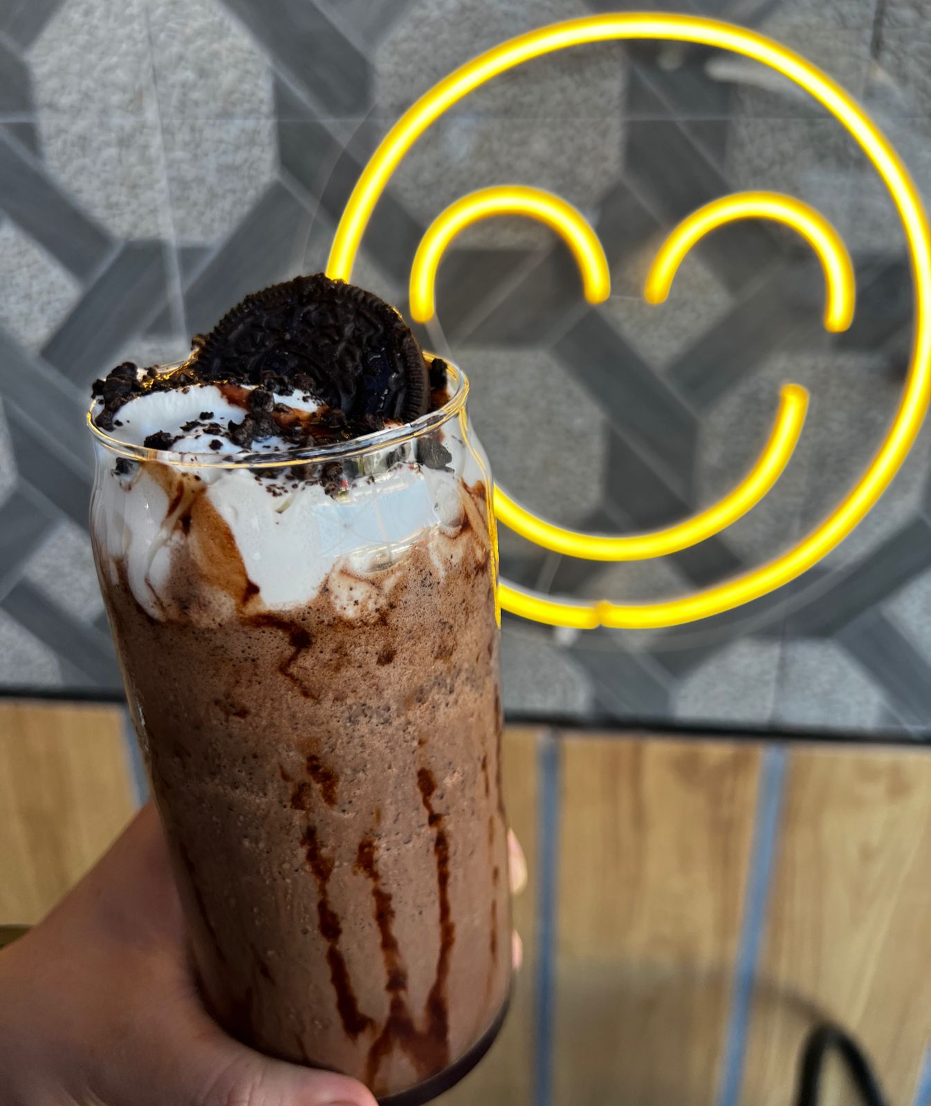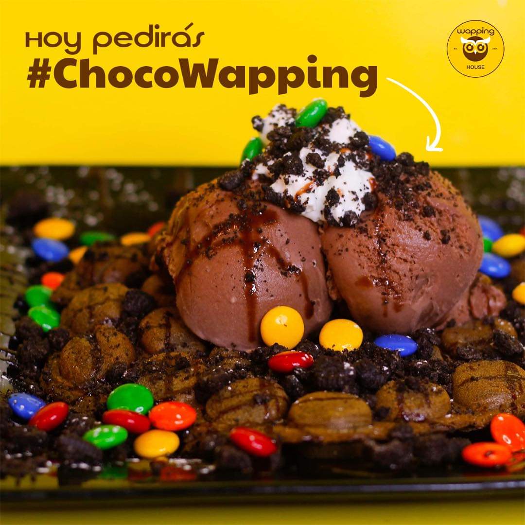 Delicioso, suave y esponjadito Waffle con m&m, oreo triturado, syrup de chocolate y nieve de chocolate.