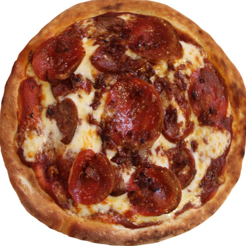 Pepperoni, queso mozzarella. Tocino, salchicha italiana, salsa de tomate de la casa