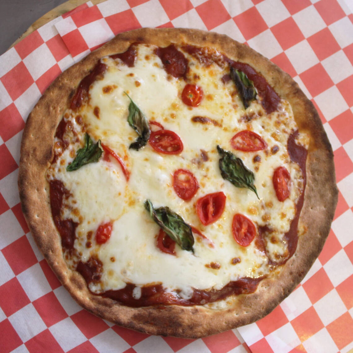 Tomate cherry, queso mozzarella, salsa de tomate de la casa, queso mozzarella fesca, albacar