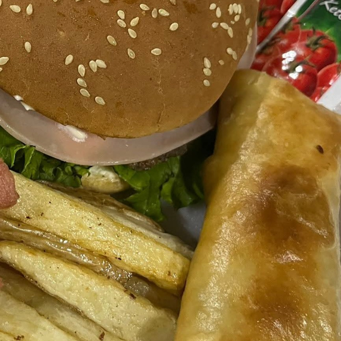 Hamburguesa + 1 Burrito + Papas fritas + Refresco