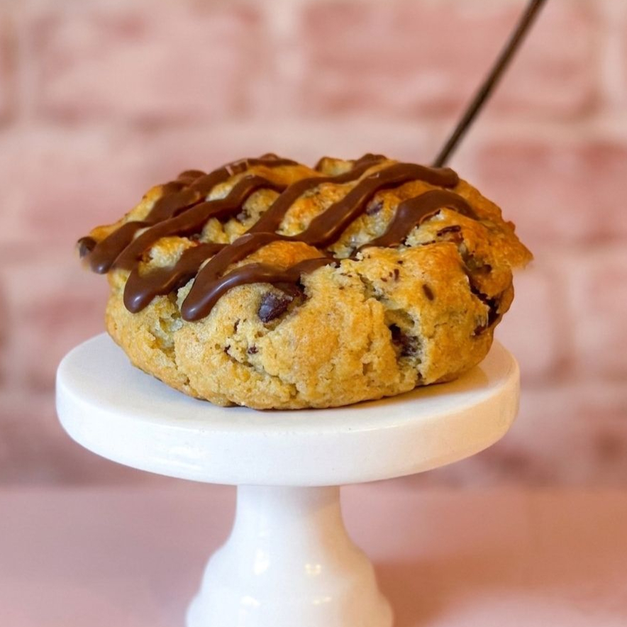 Galleta estilo New York de 100 g, sabor chocolate rellena de chispas de chocolate y toppings de Nutella y ferrero.