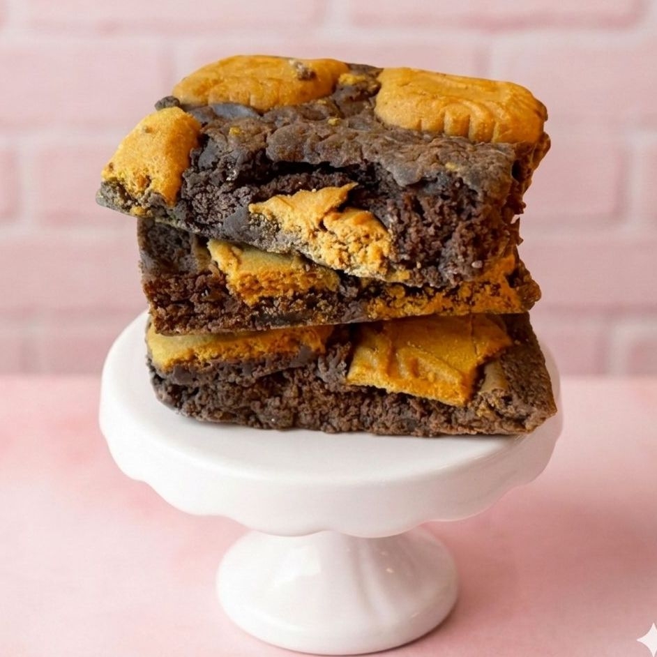 Brownie intenso de chocolate, combinado con crema y chunks de galleta Lotus Biscoff.