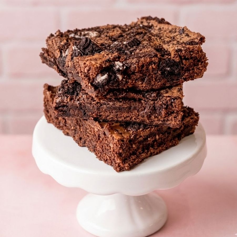 Brownie intenso de chocolate, combinado con la cremosidad de la Nutella y un toque crujiente de galleta Oreo encima.