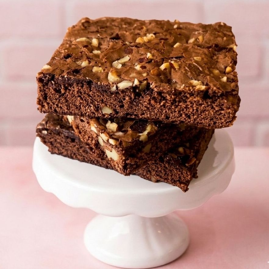 Clásico brownie chocolatoso y denso, enriquecido con trozos de nuez crujiente y dulce de leche.