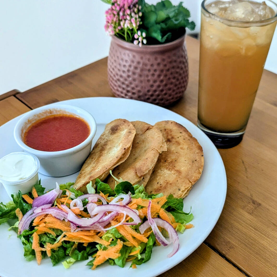 1 Quesadilla de Jamon de Pechuga de Pavo, queso mixto, lechuga, tomate y cebolla