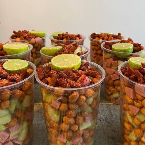 Cueritos pepino limon cacahuate rielitos clamato y salsa