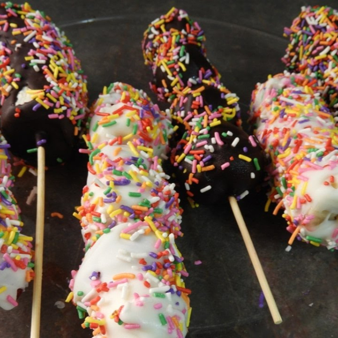 Plátano cubierto de chocolate y chispas sabores