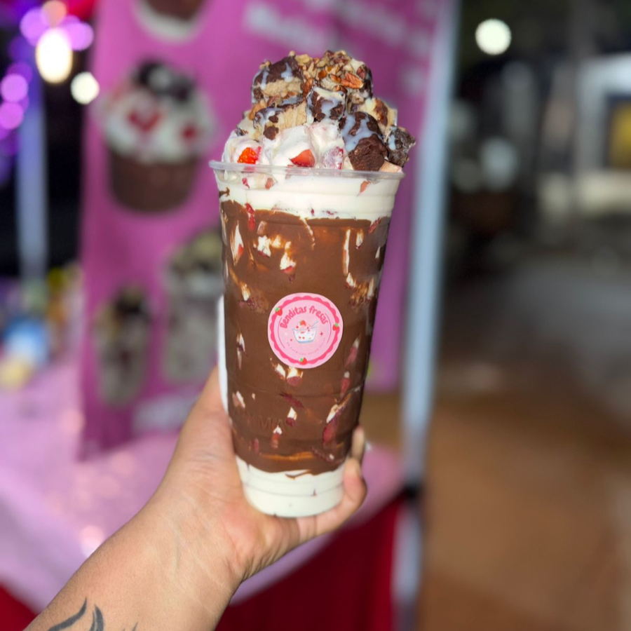 Fresa ,crema +topping y jarabe a elegir, oreo ,coco,lunetas,nuez,bombones,chispas,pasitas,gansito, pingüino,chocorrol,Nutella,lechera,cajeta, chocolate