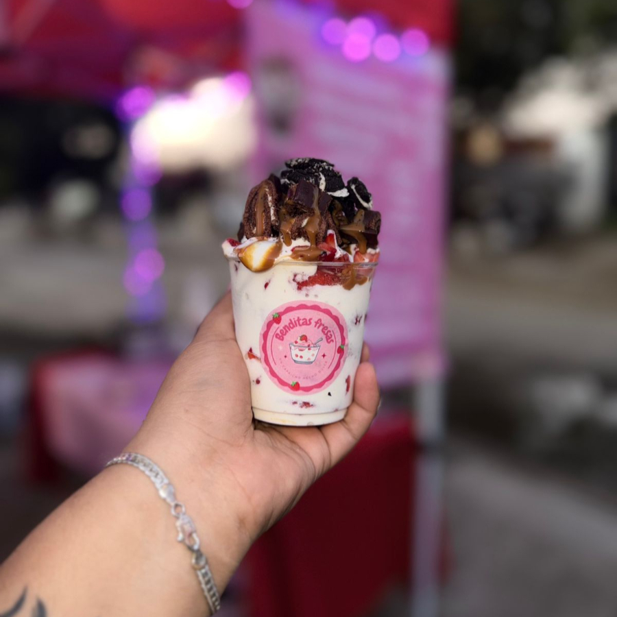 Fresa y crema + topping y jarabe a elegir, coco, lunetas,chispas,nuez,oreo,pasitas, bombones, chocolate,lechera,Nutella,cajeta
