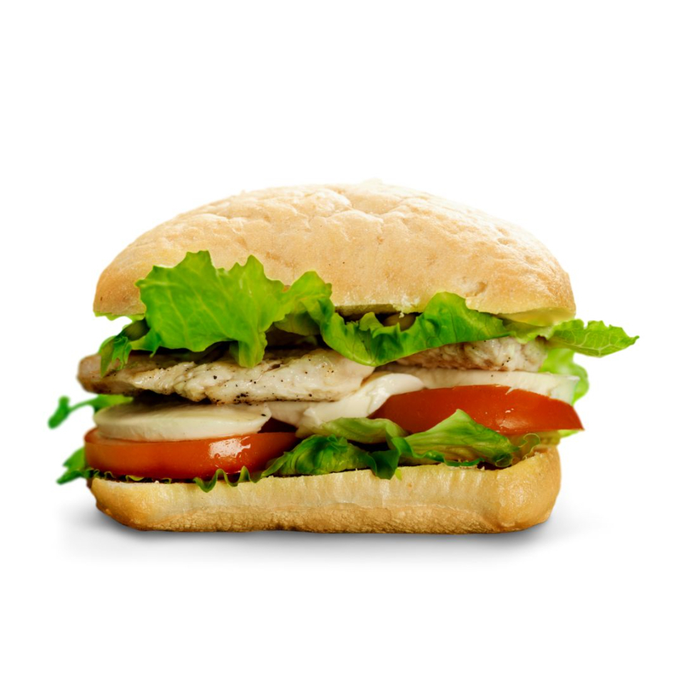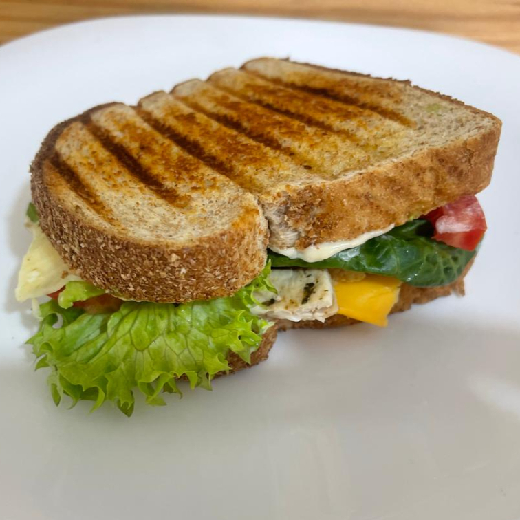 Pan integral, pechuga de pollo, queso americano, queso chihuahua, lechuga, tomate, cebolla, aguacate