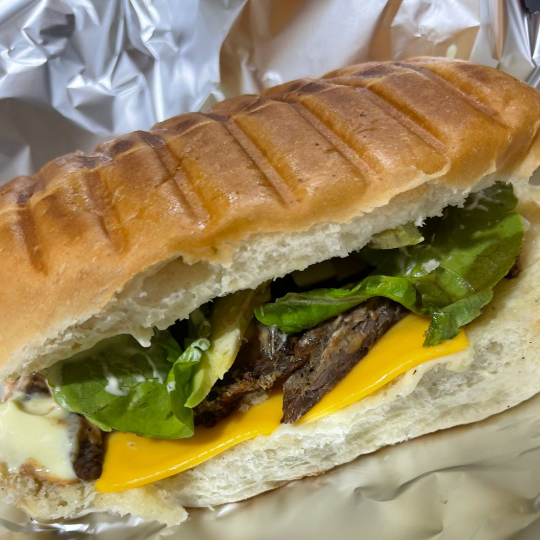 Arrachera de res, queso chihuahua, queso americano, lechuga, tomate, cebolla, aguacate, aderezos
