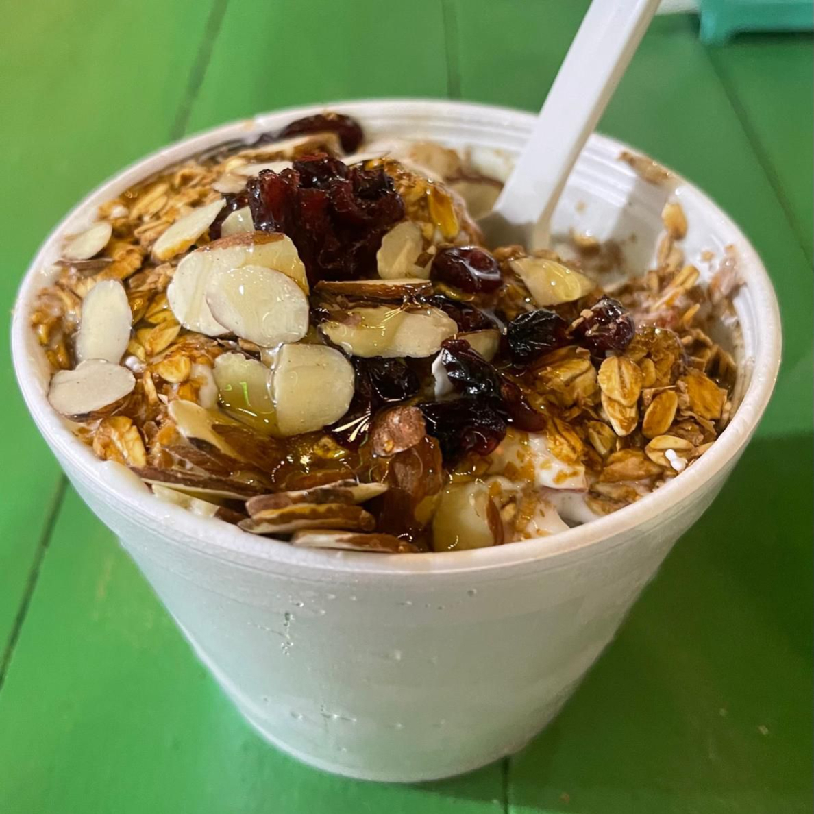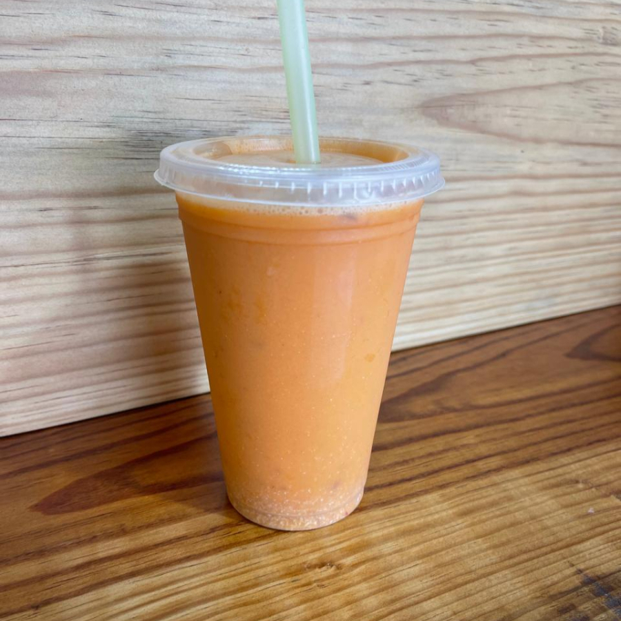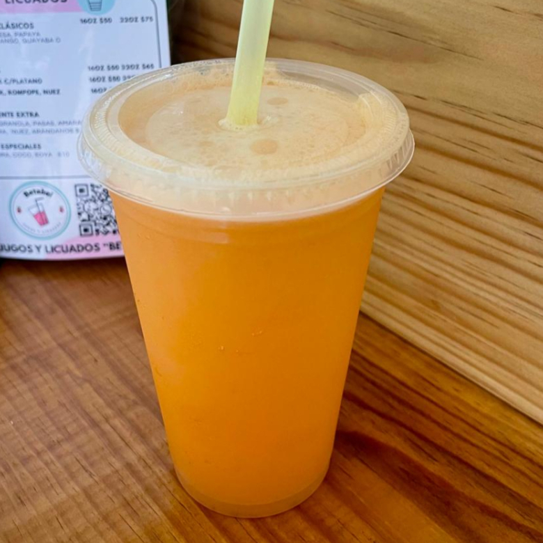 Jugo de naranja recién hecho, con guayaba, piña, limón y miel.
