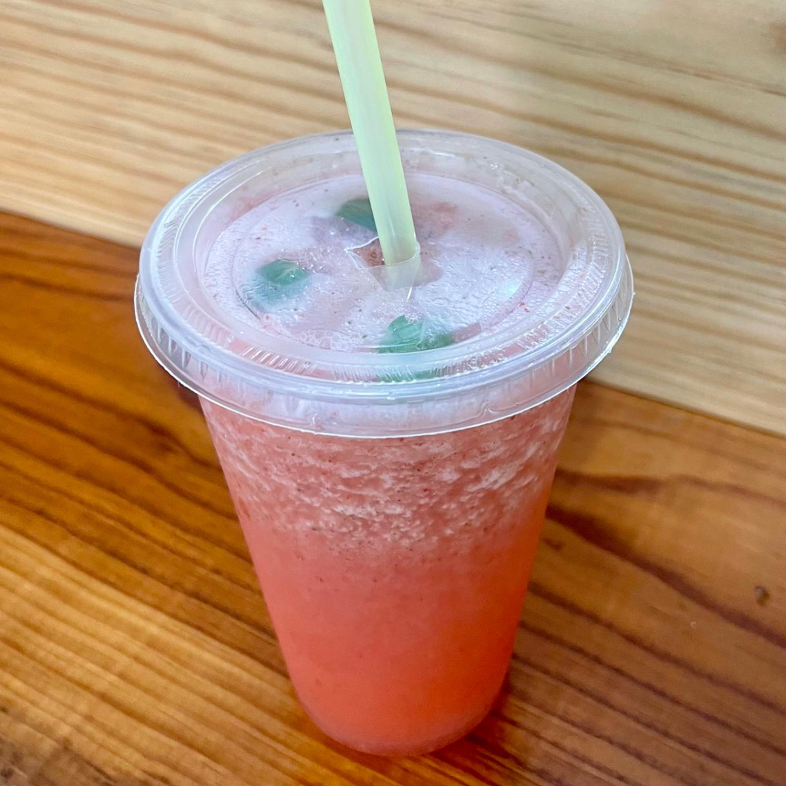 Bebida de fresas, jugo de limón, menta y agua mineral