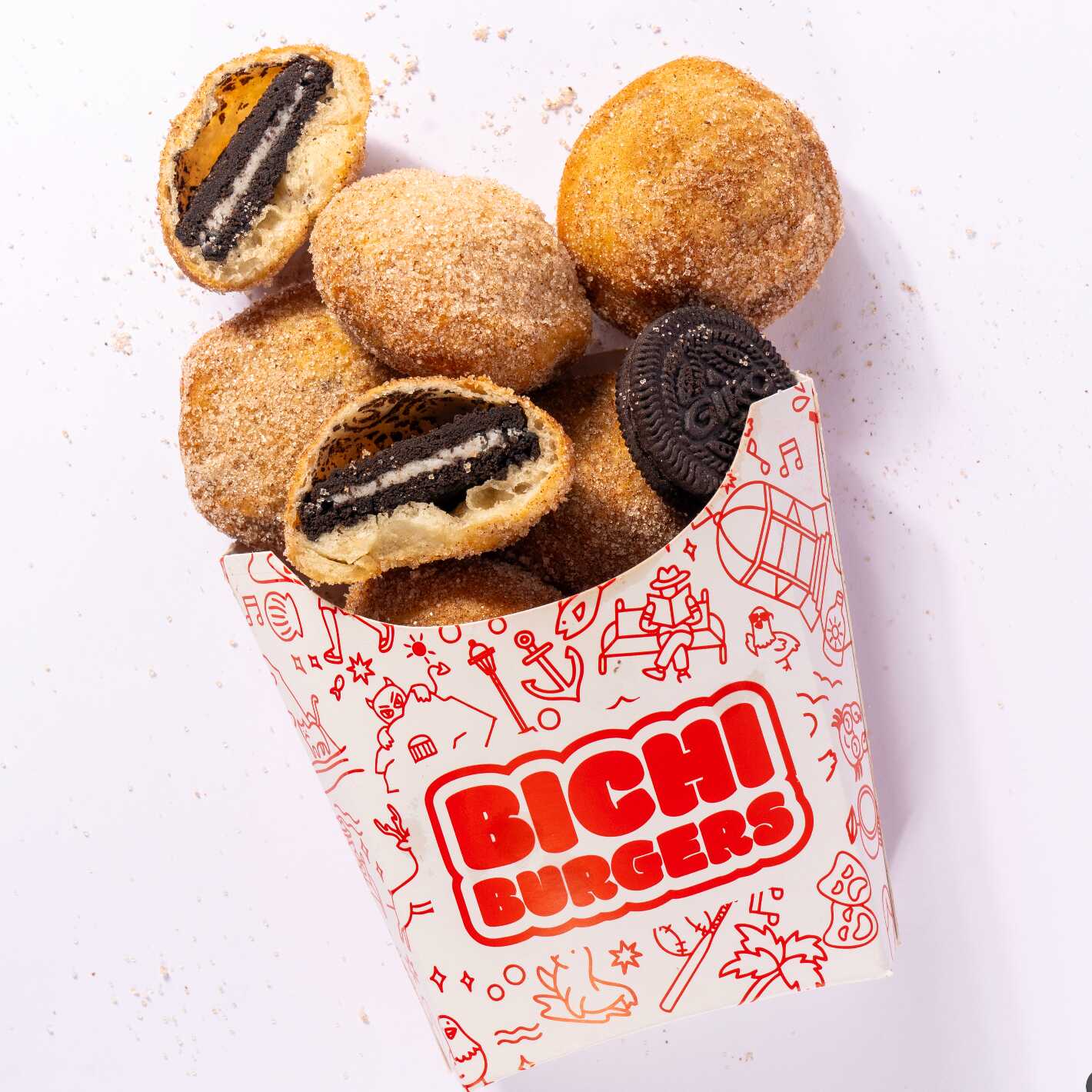 Riquísimas galletas oreo envuelta masita casera con dorada tipo churro, espolvoreadas con un toque de canela y azúcar. Acompañada de lecherita nestlé