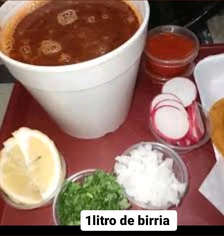 Vaso de birria 1 L, incluye tortillas y verdura aparte (cebolla, cilantro, salsa).