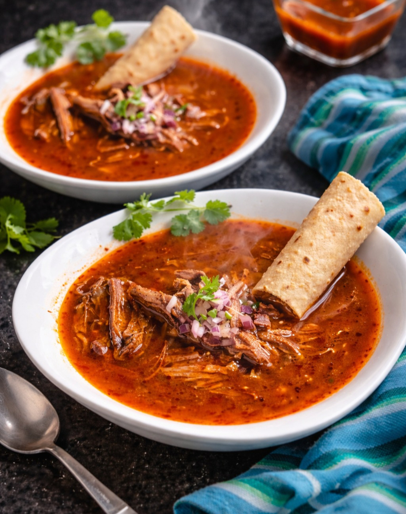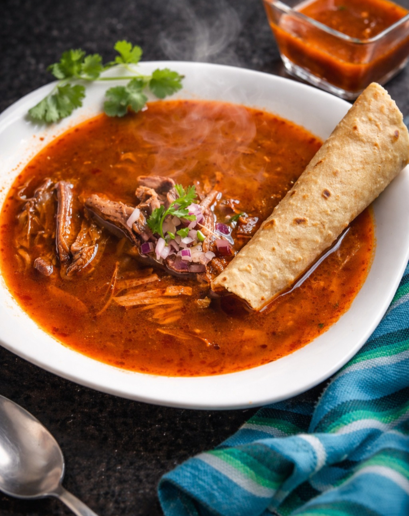 Porción de 500 ml de jugosa birria servida en su consomé original, ideal para compartir o disfrutar individualmente.