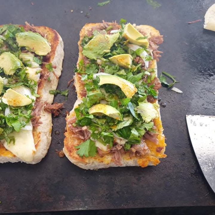 Deliciosa torta con birria a la leña
