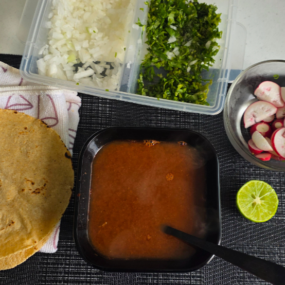 Incluye tortillas, cebolla, cilantro, limón y salsas