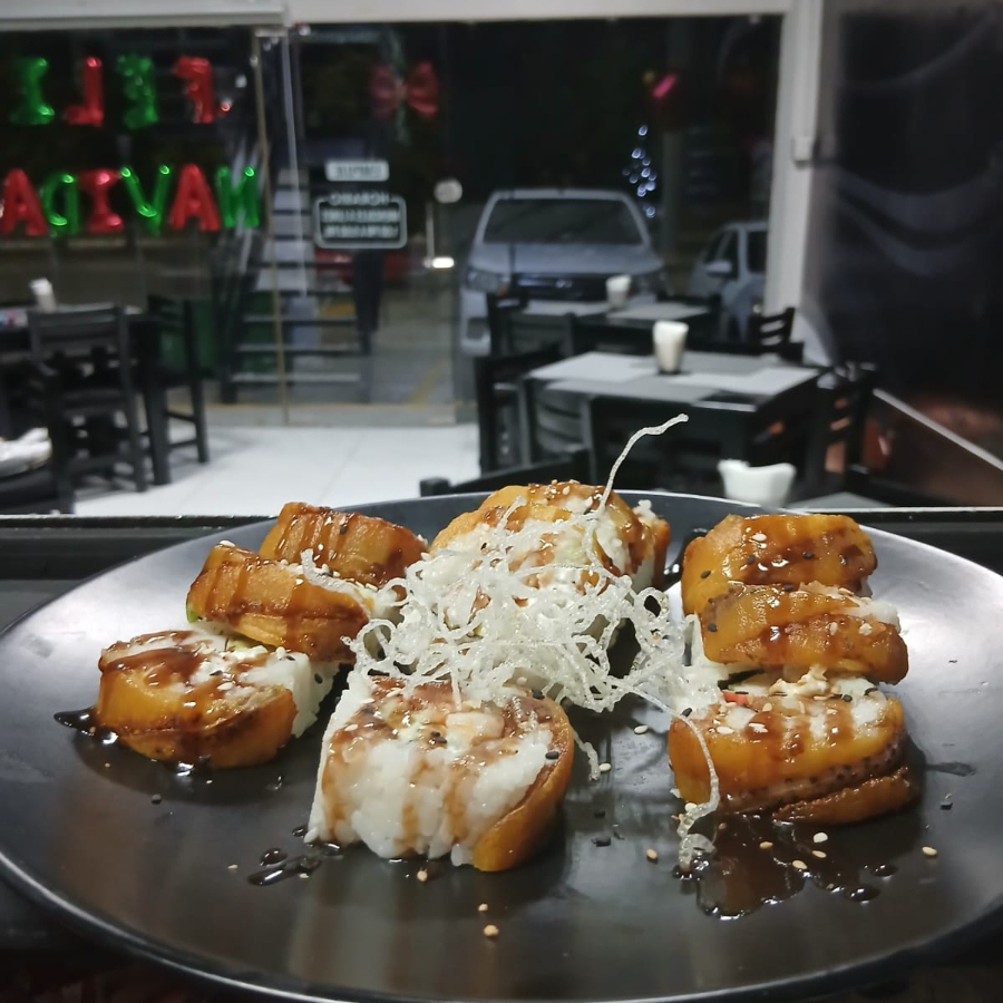 D: CAMARON, ARRACHERA, PEPINO, AGUACATE Y PHILADELPHIA; F: TAMPICO, SALSA DE ANGUILA Y AJONJOLI