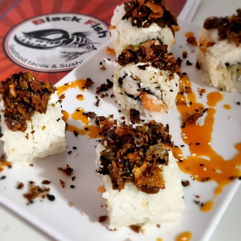 D: CAMARÓN, PEPINO, AGUACATE Y PHILADELPHIA; F: ATUN, SPICY DE SURIMI Y SALSA DE ANGUILA