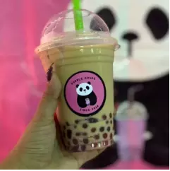 Bebida sabor matcha a base de leche con una porcion de perlas o jelly