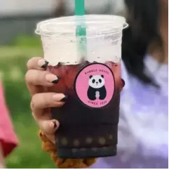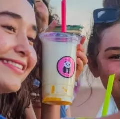 Bebida sabor vainilla a base de leche con una porcion de perlas o jelly
