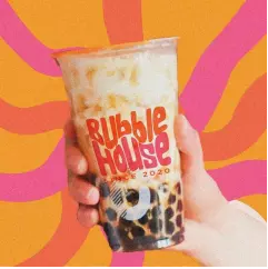 Bebida sabor avellana a base de leche con una porcion de perlas o jelly
