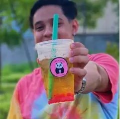 Bebida sabor thai a base de leche con una porcion de perlas o jelly