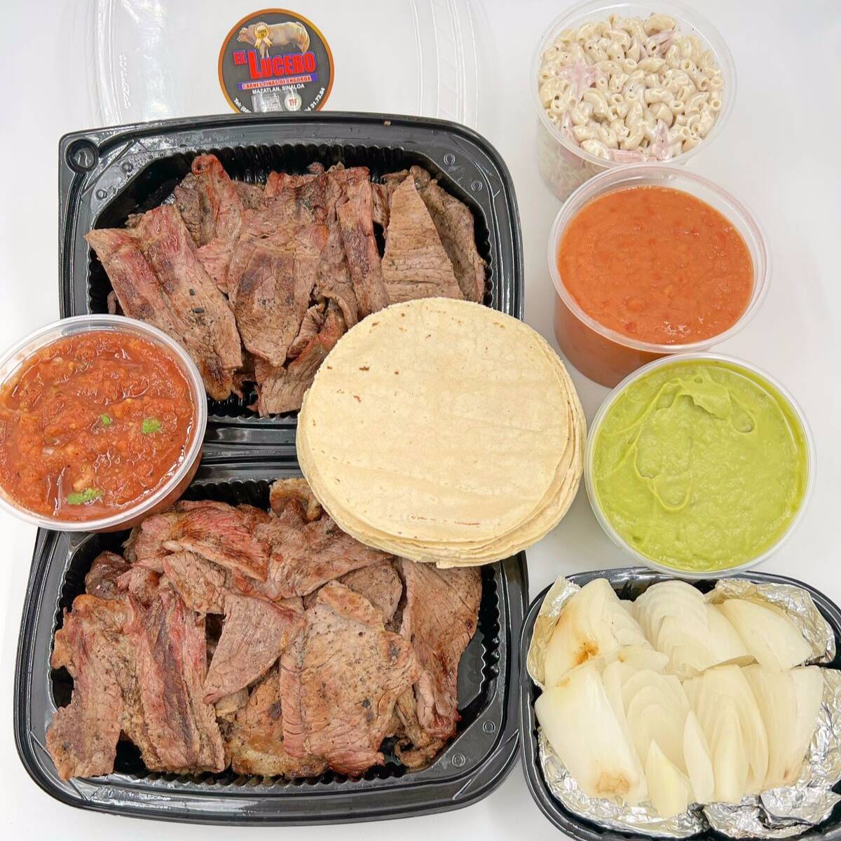 Salsa Tatemada Casera*2 + Tortillas*2 + Medio Litro Frijoles Puercos*1 + Medio Kilo de Carne Asada*1 + Un Kilo de Carne Asada*1 + Medio Litro Sopa Fria*1