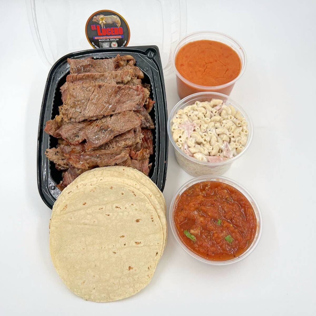 Un Kilo de Carne Asada*1 + Salsa Tatemada Casera*2 + Medio Litro Frijoles Puercos*1 + Tortillas*2 + Medio Litro Sopa Fria*1