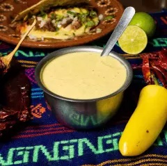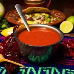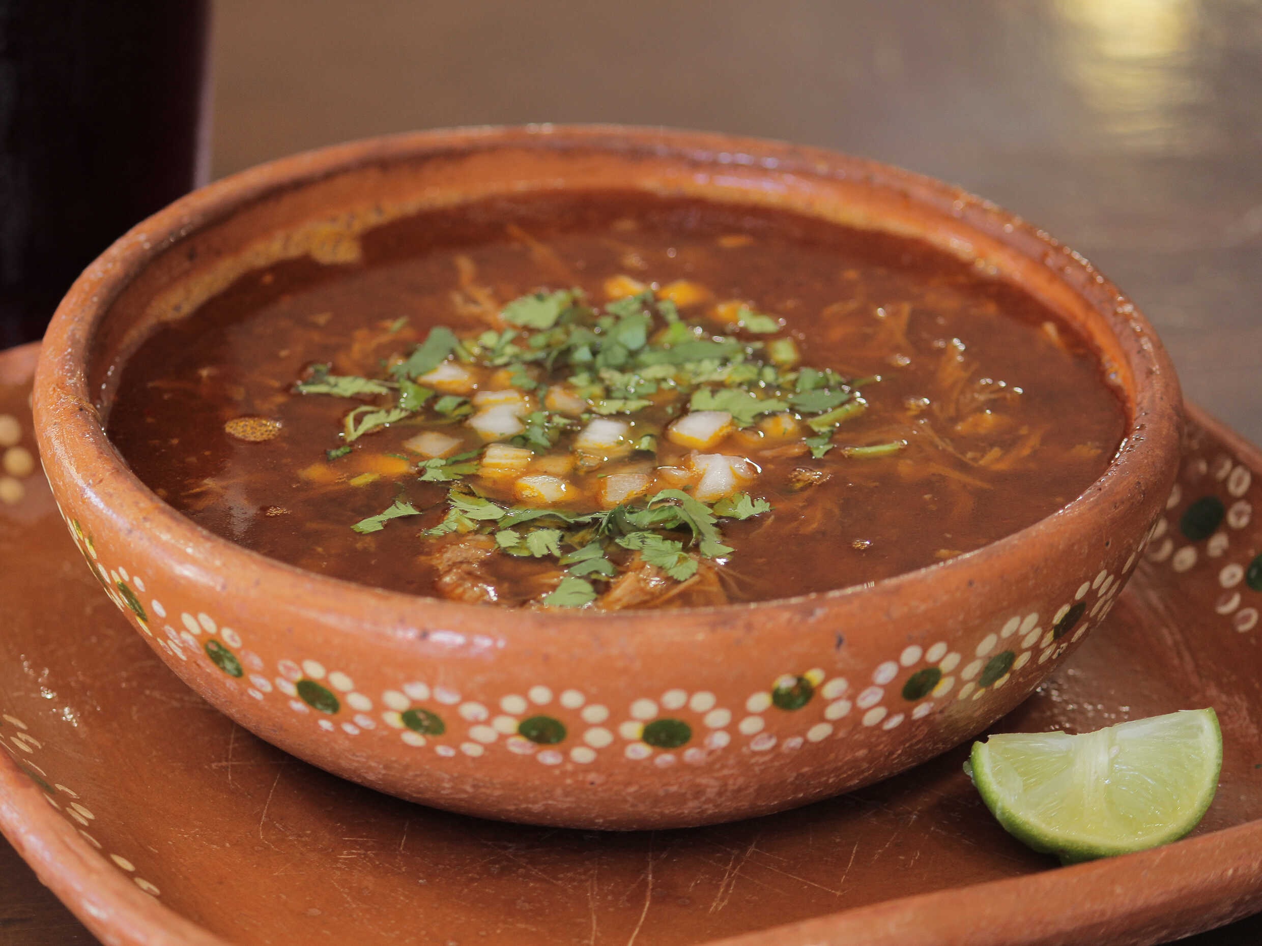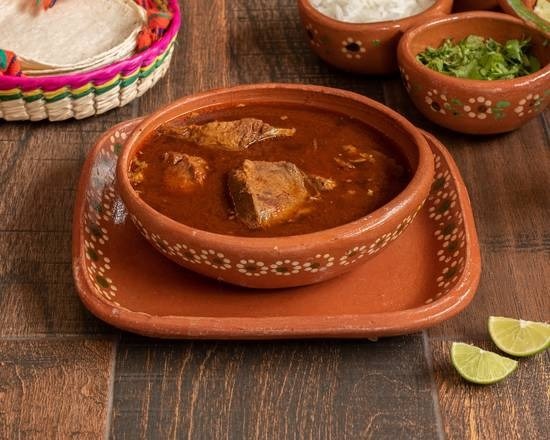 Deliciosa carne de res en caldo. Acompañada de tortillas de maíz, cebolla, cilantro, limones, salsa verde picosa y salsa de chile de árbol