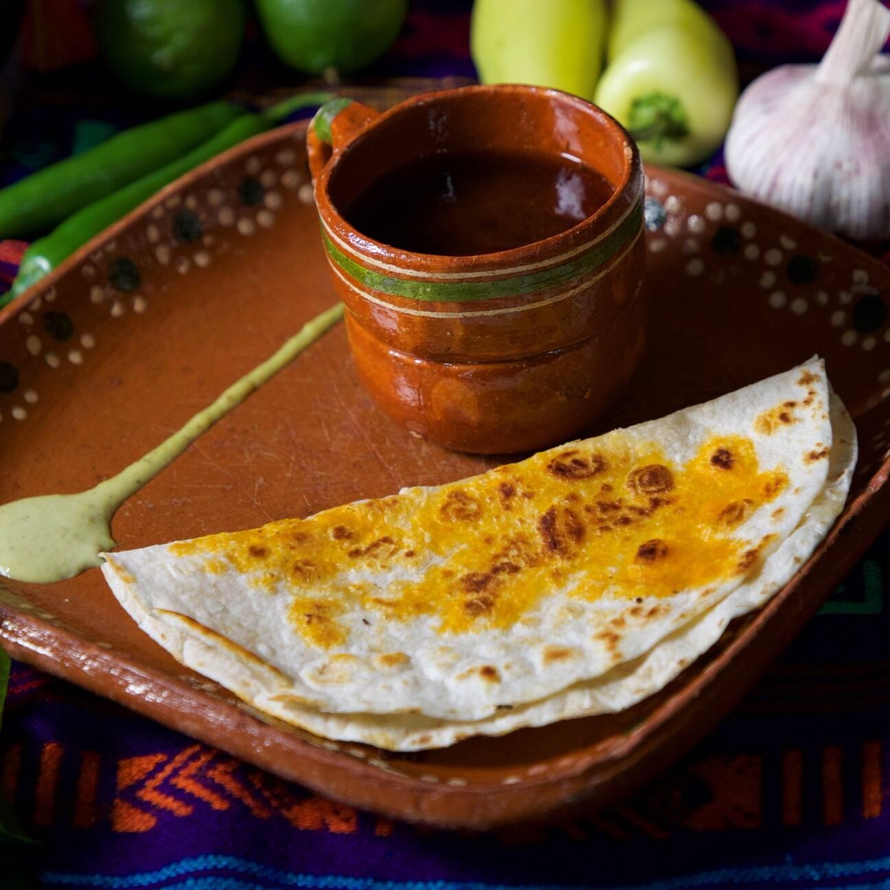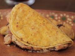 Tortilla de maíz rellena de queso fundido, ¡agrega el guisado de tu preferencia!