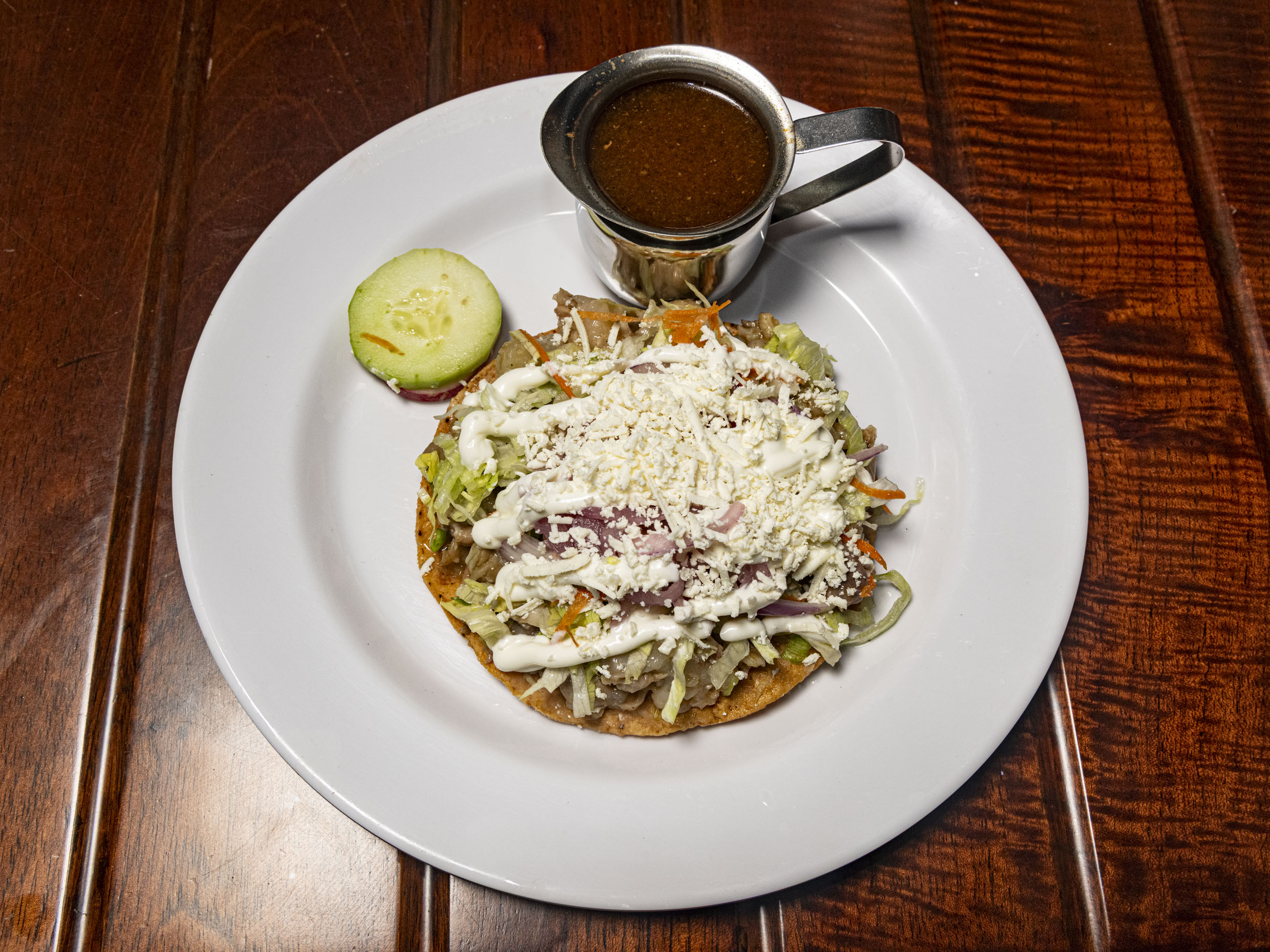 Sope con carne deshebrada de res.