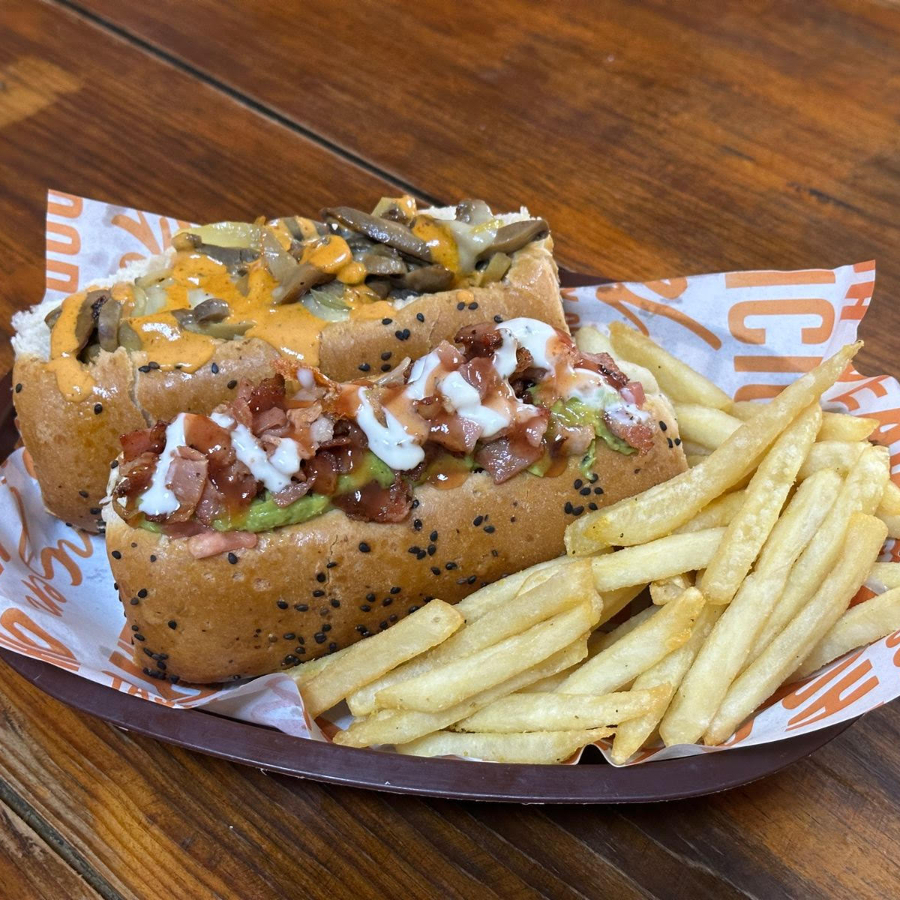 Salchicha de pavo, mayonesa, cebolla crispy, queso selecto, champiñón guisado y aderezo chipotle.