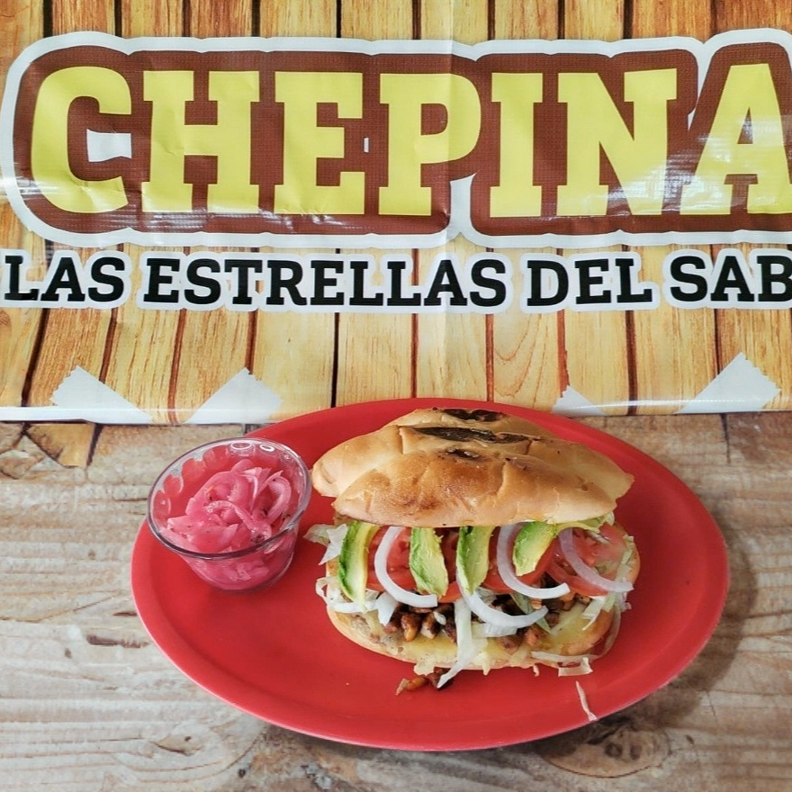 Azada, pastor, chicharron,, preparados con lechuga, , cebolla, aguacate, y jalapeños con el pan dorado en mantequilla huga, tomate, cebolla,