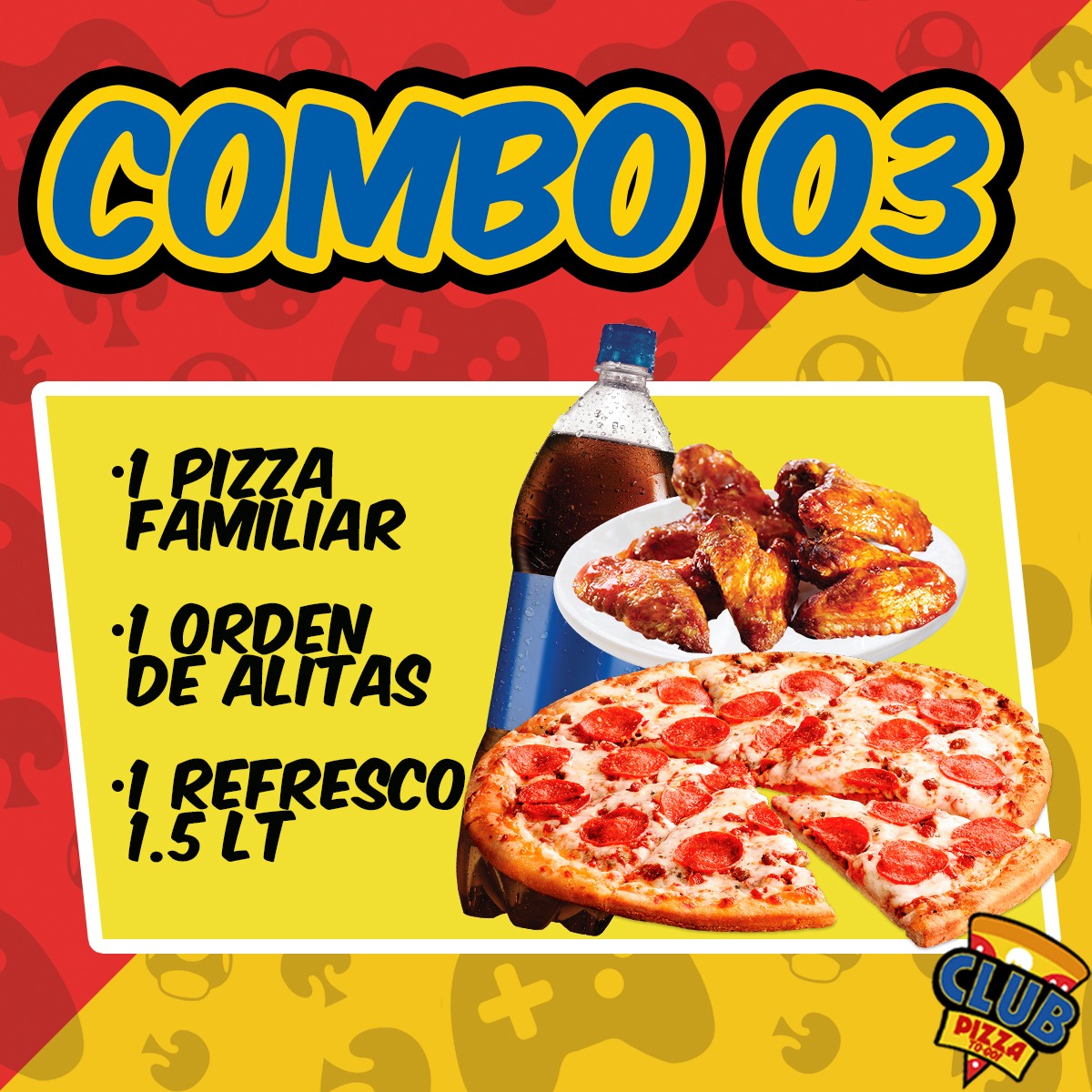 Orden Chica de Alitas*1 + PEPSI 1.5 Lt*1 + Pizza Familiar*1