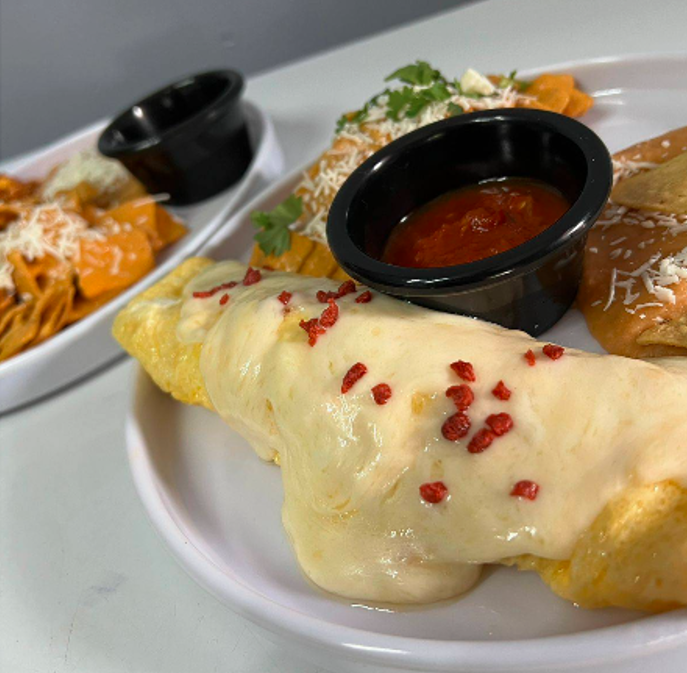 Relleno con riquisimo bistec ranchero bañado en salsa ranchera.