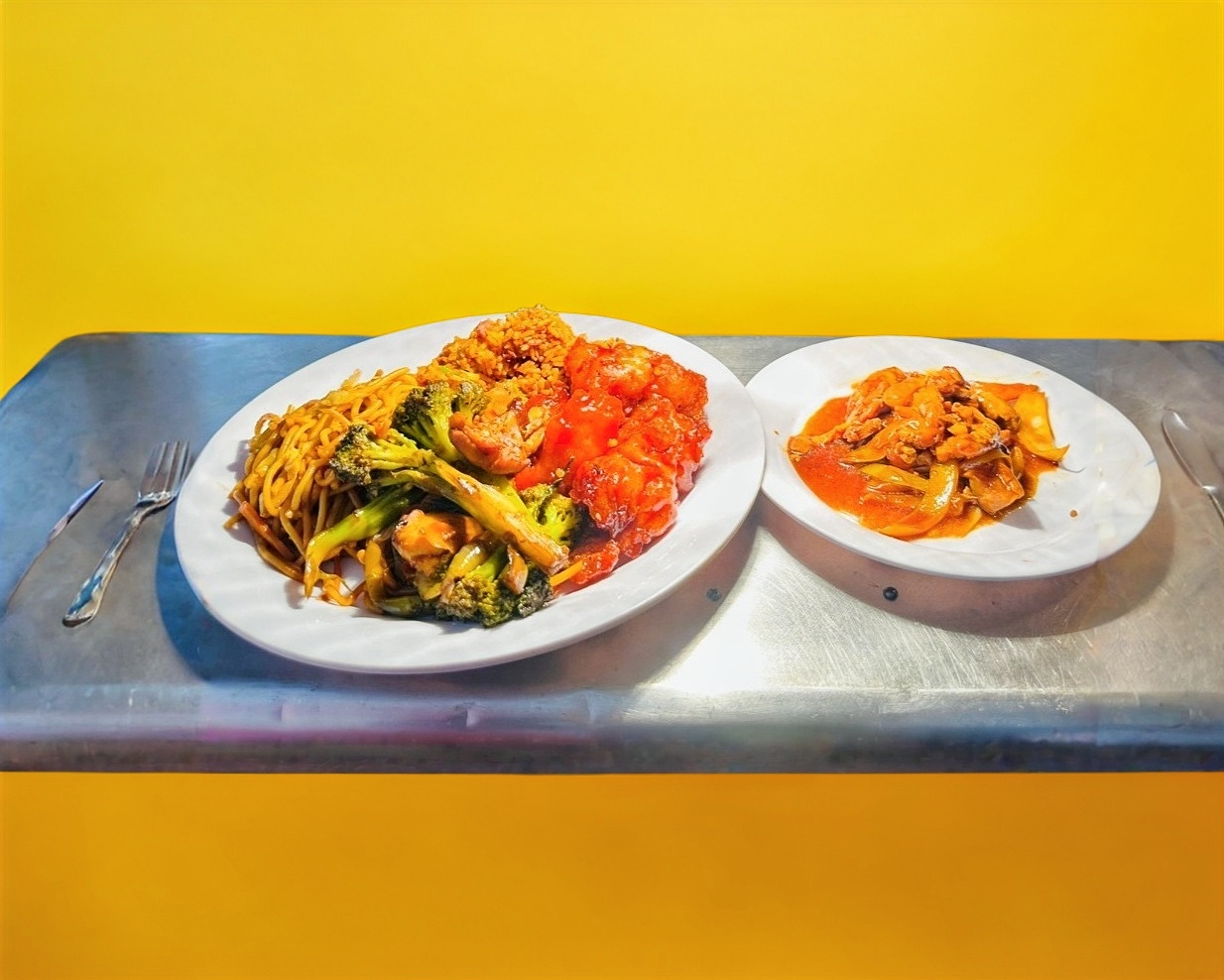 Arroz y/o Espagueti + 2 Guisados, máximo para dos personas.