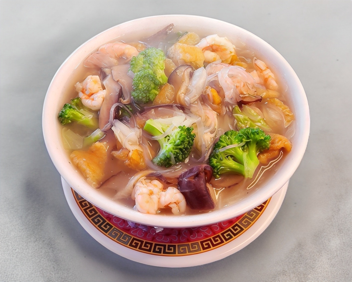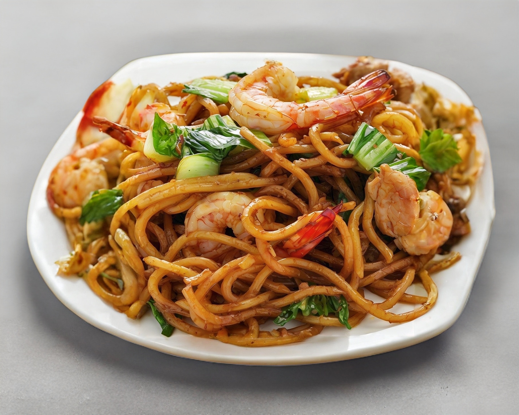 camaron pollo fideo grueso y verduras