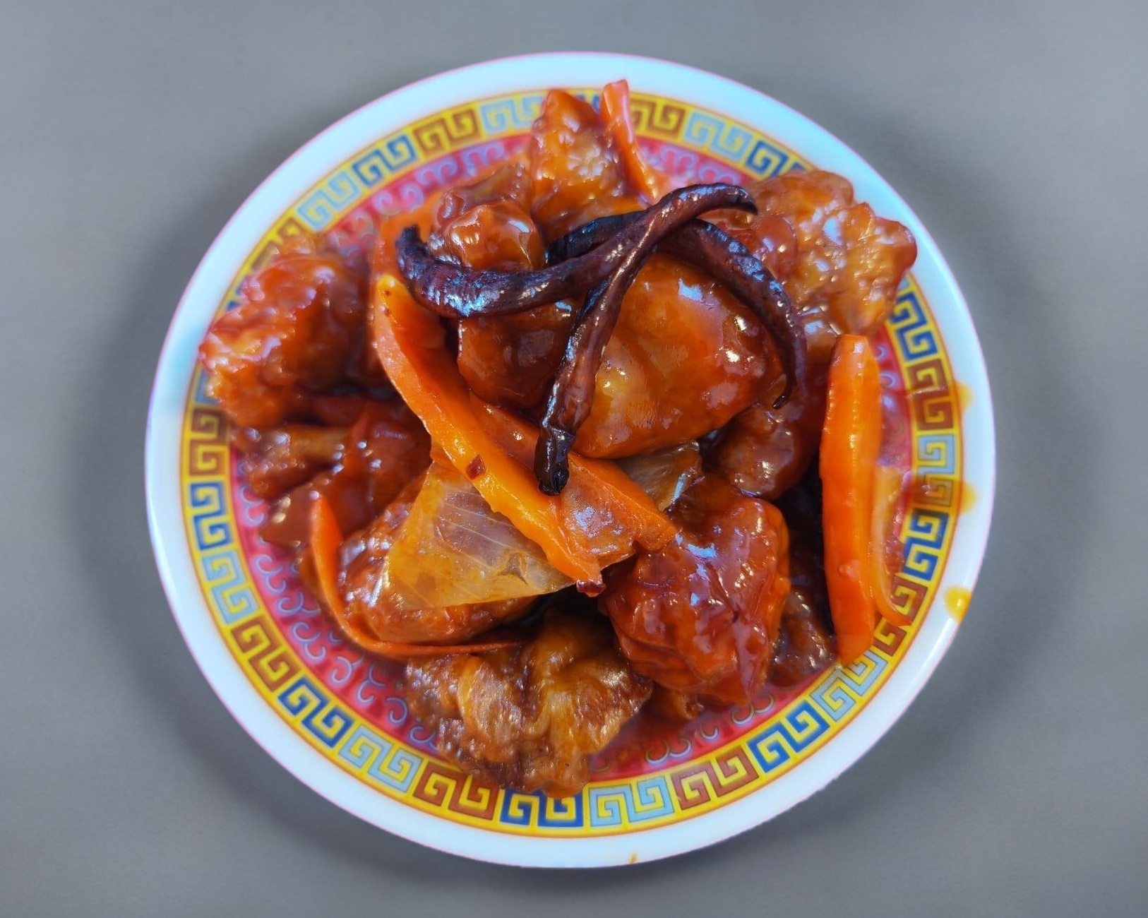 Pollo frito con salsa agridulce y chile. 1/2