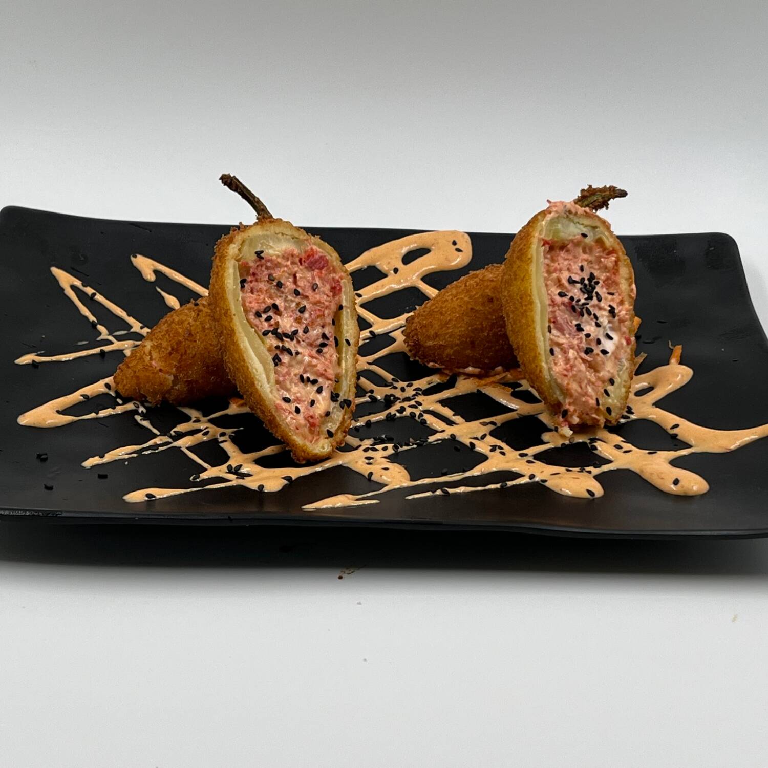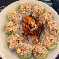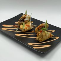 Rellenos de kanikama, spicy, pepino y aguacate envuelto en láminas de pescado.