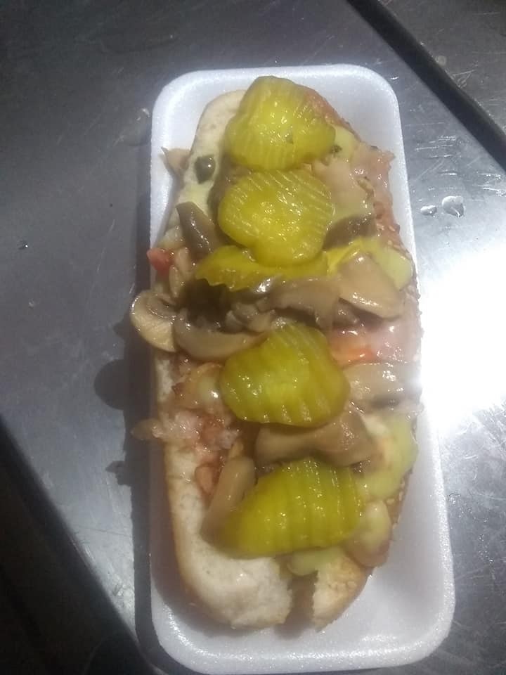 Dos salchichas y camarón.