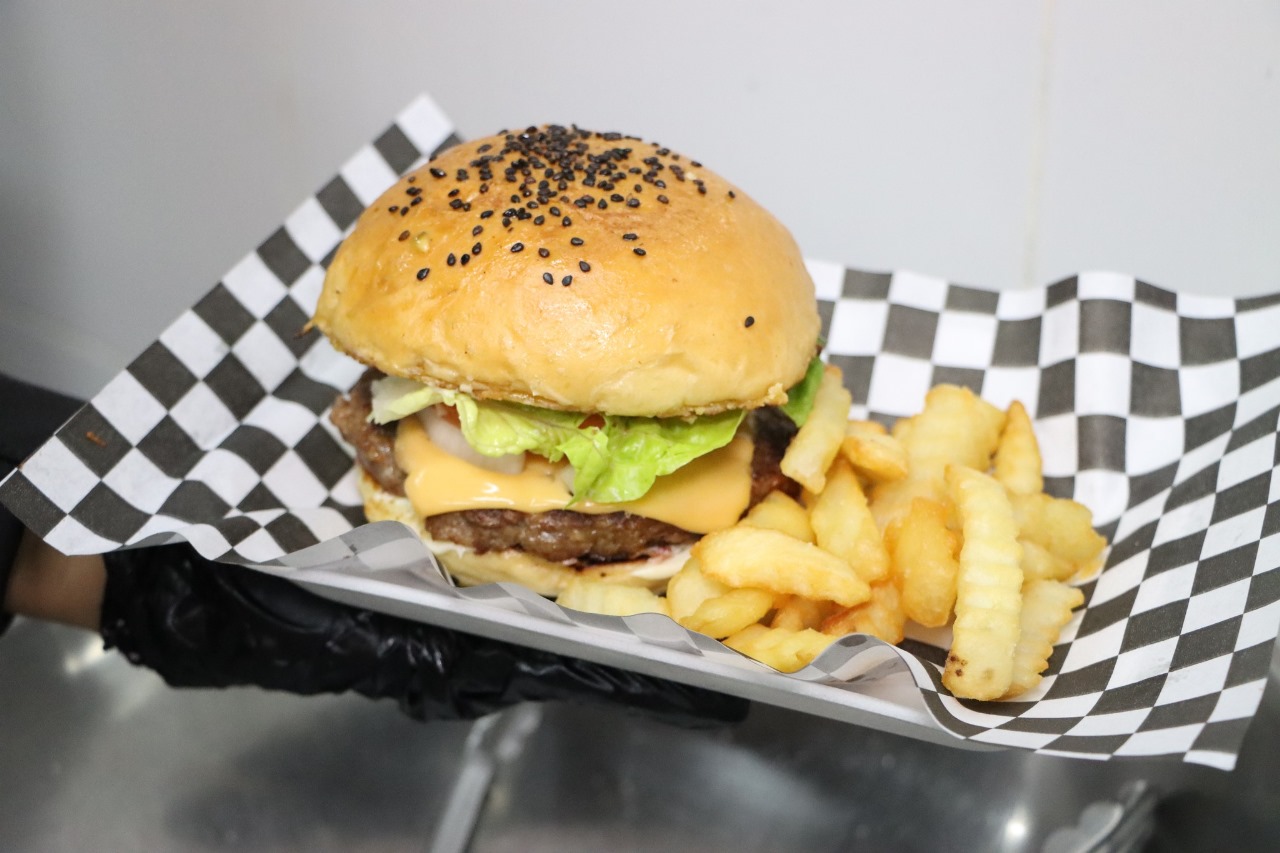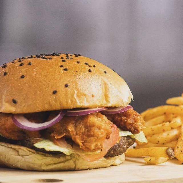 Preparada con carne 100% de res , queso amarillo, lechuga, tomate, cebolla y boneless incluye orden de papas chicas.