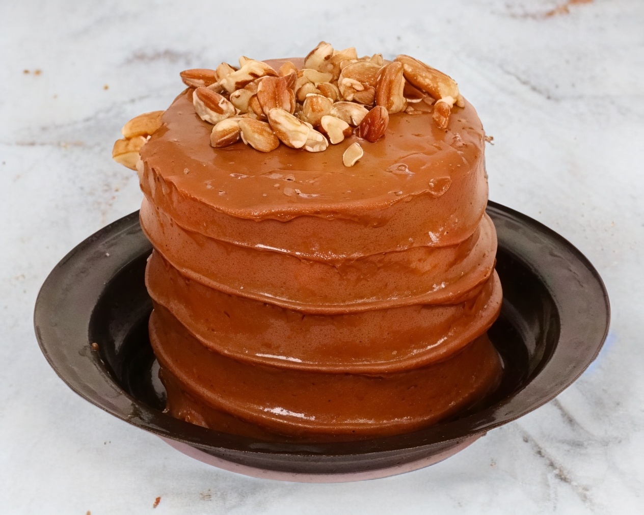 Pan artesanal de chocolate con betún de chocolate tradicional con nuez