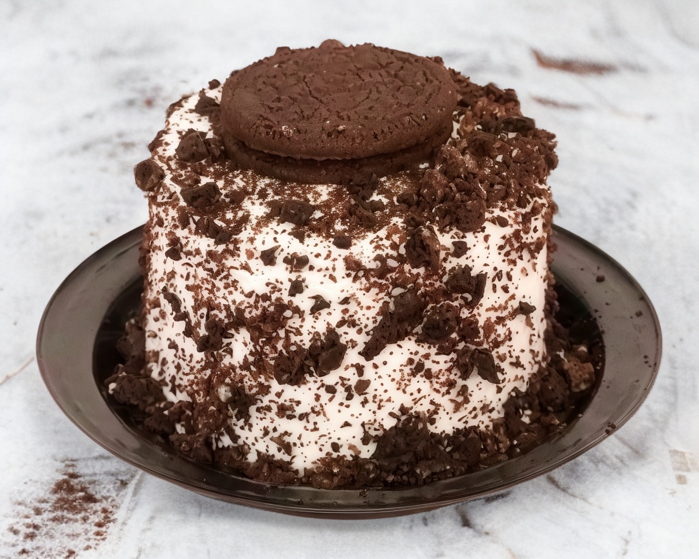 Rico pan chocolate esponjoso, relleno y cubierta betún sabor galleta oreo
