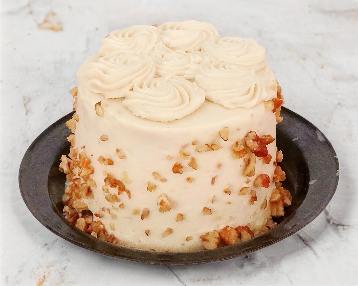 Delicioso pastel de zanahoria, con betún de mantequilla y nuez