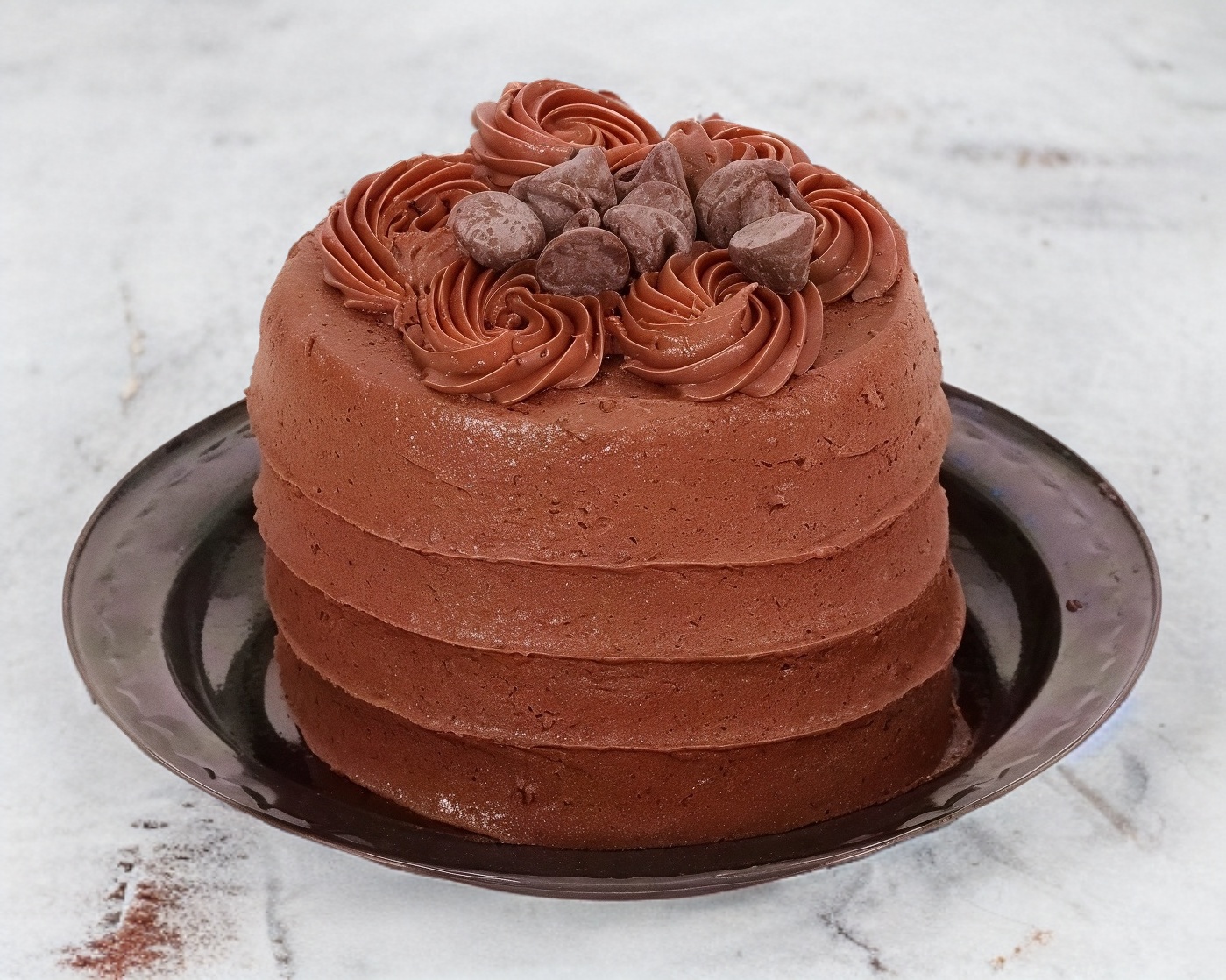 Delicioso pastel de chocolate, relleno y cubierto con nuestro popular chocolate imperial (semi-amargo)